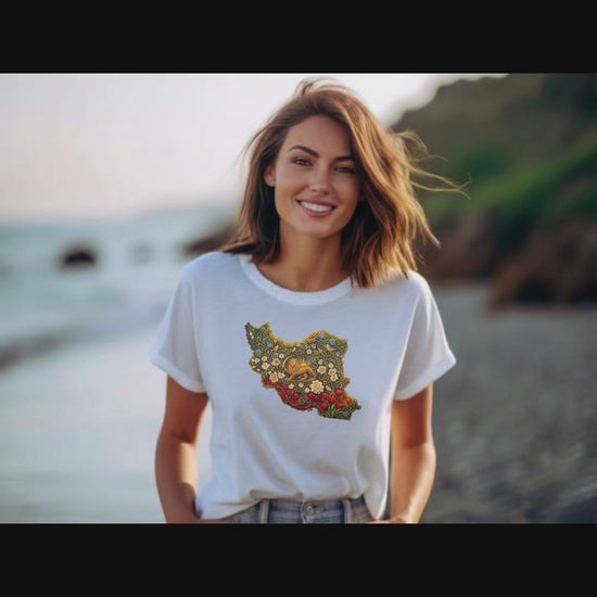 This beautifully detailed t-shirt features the map of Iran filled with intricate floral patterns and the iconic Lion & Sun symbol — a powerful representation of Persian heritage, strength, and identity.