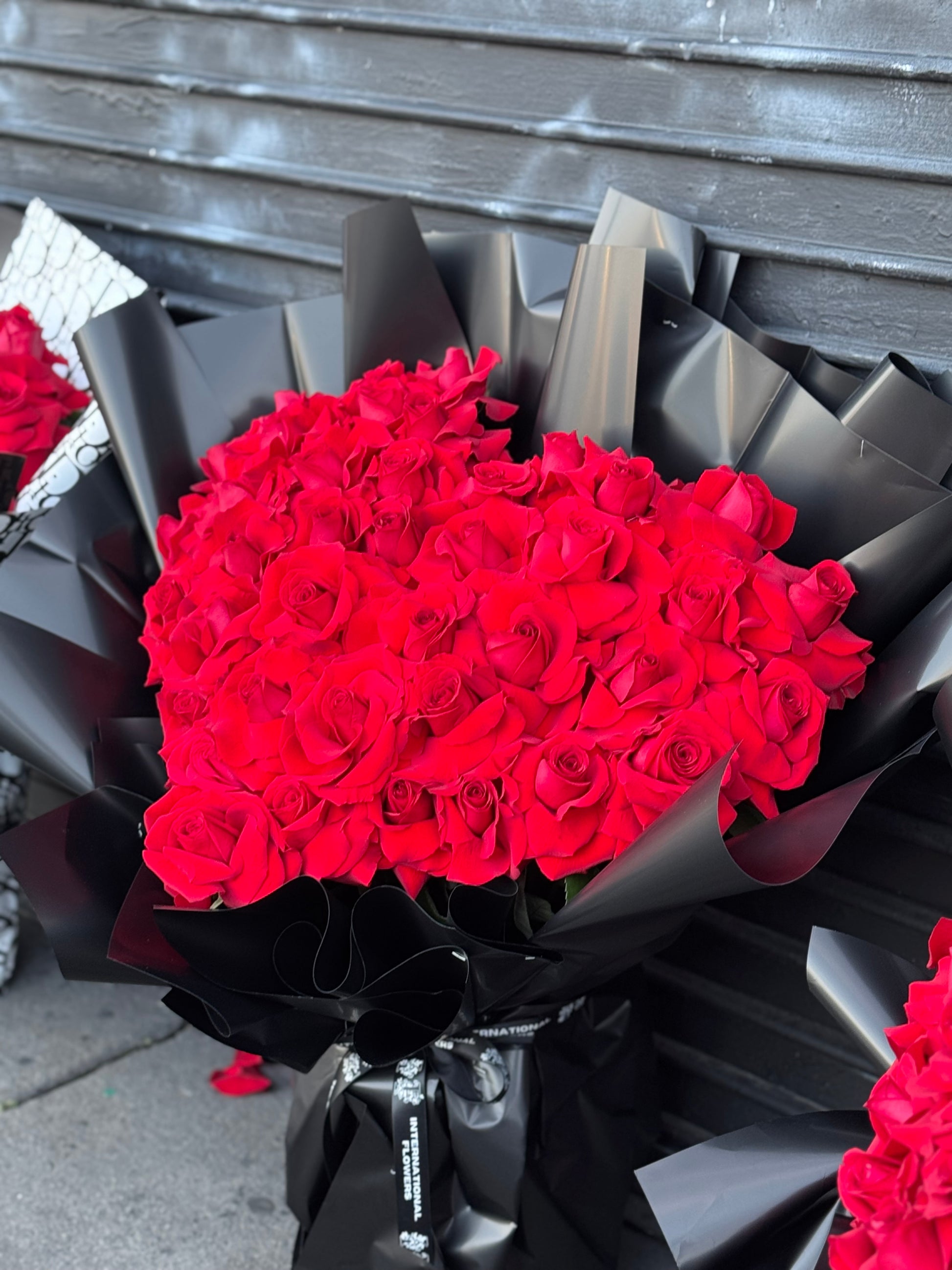 Large heart red roses flowers